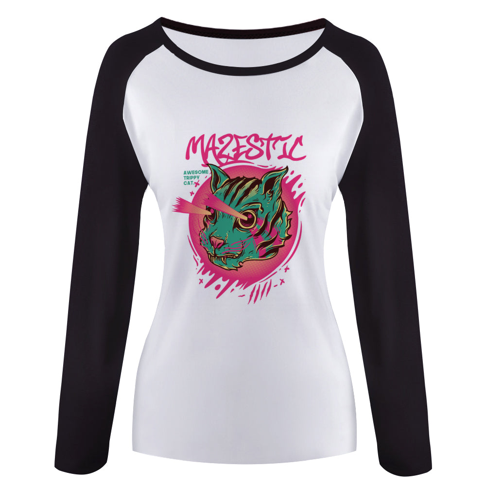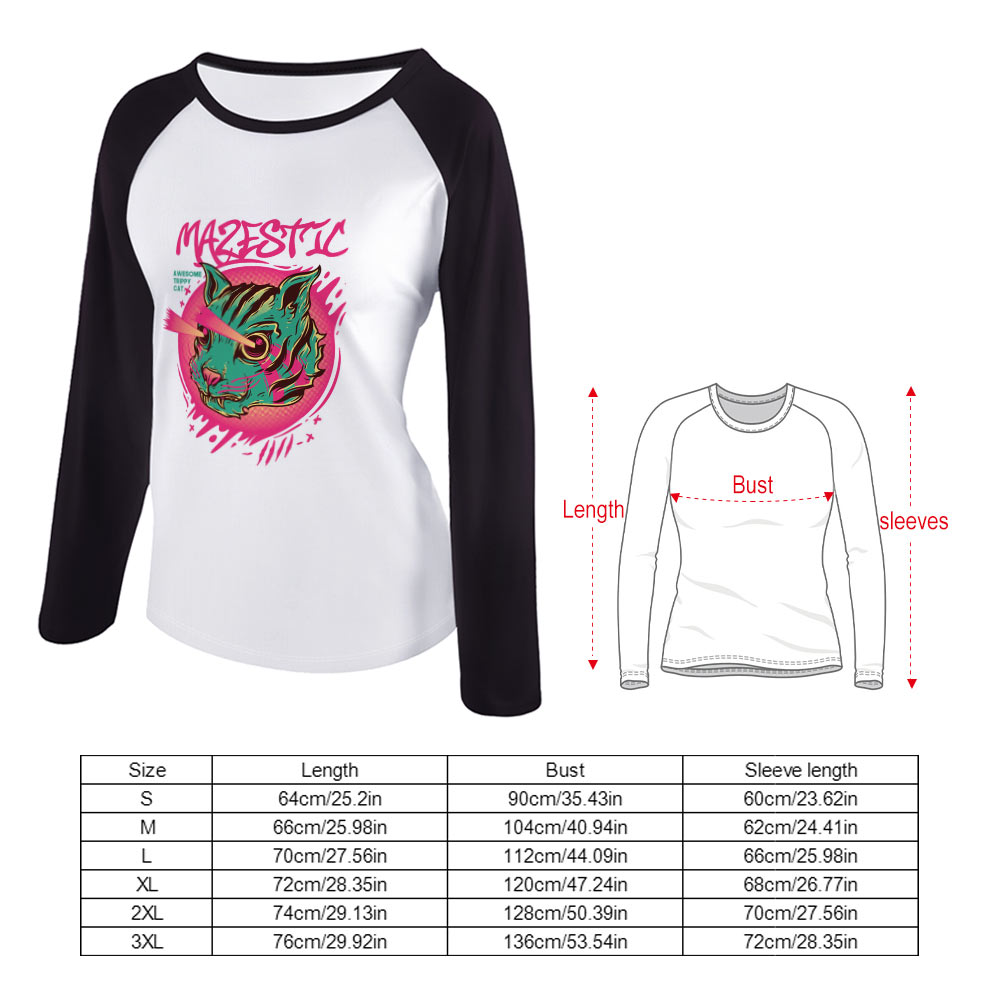 T-shirt Raglan tee shirt à manches longues en col rond en coton femme tendance chic personnalisé avec motif image logo texte.