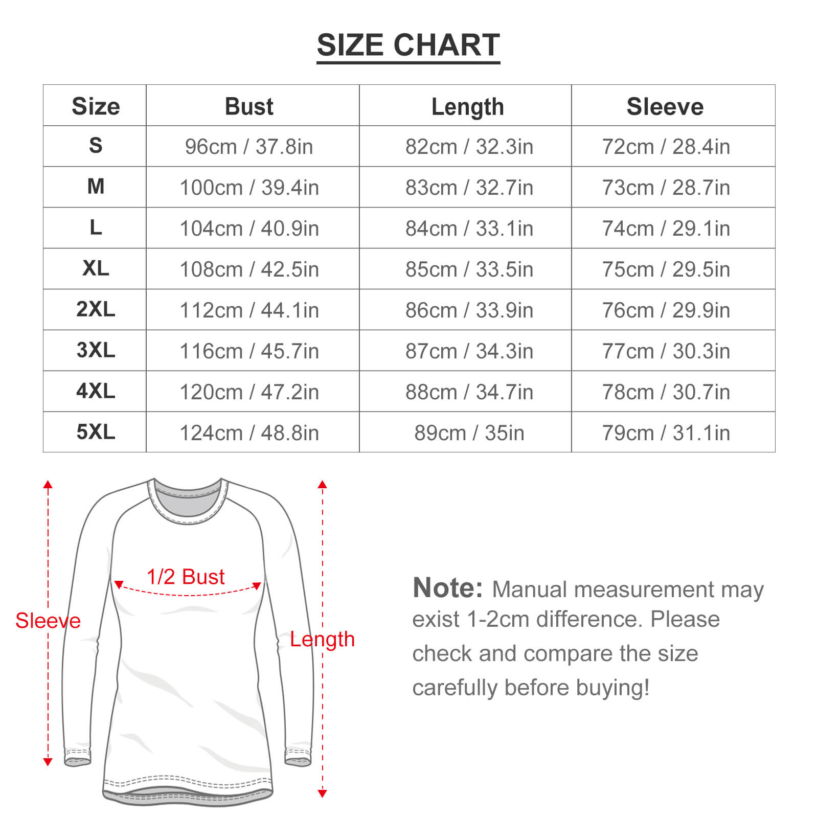 5XL | 89 | 124 | 79 |