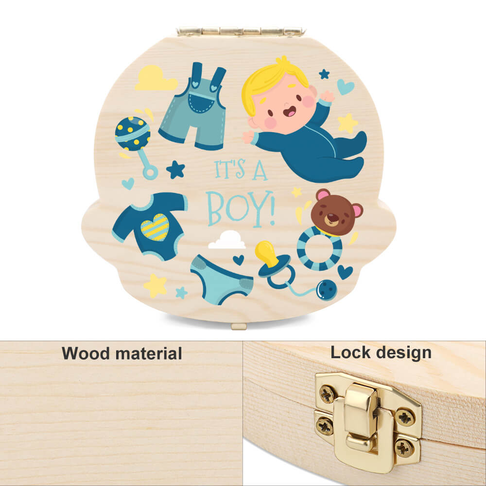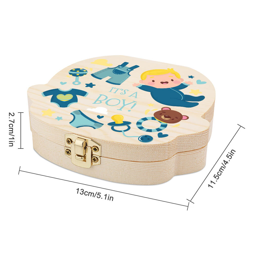 Boîte à dents de lait en bois pour les enfants personnalisé avec photo motif logo texte prénom. Cette boîte à dents pour enfants est faite de bois de pin importé pour assurer la santé et la protection de l'environnement. Elle est en bonne santé pour le bébé. Et cette boîte accompagne la croissance du bébé, qui est témoin de l'empreinte de croissance du bébé. Un travail exquis, une couleur vive sur la surface de la boîte, quel délicat et beau ce produit! Cette boîte à dents convient à la période de remplacement des dents de bébé. Elle stocke les dents de lait et le lanugo du bébé, et assiste à la croissance du bébé ensemble, ce qui est pratique pour que bébé se souvienne de son enfance lorsqu'il grandit. C'est un très bon cadeau.