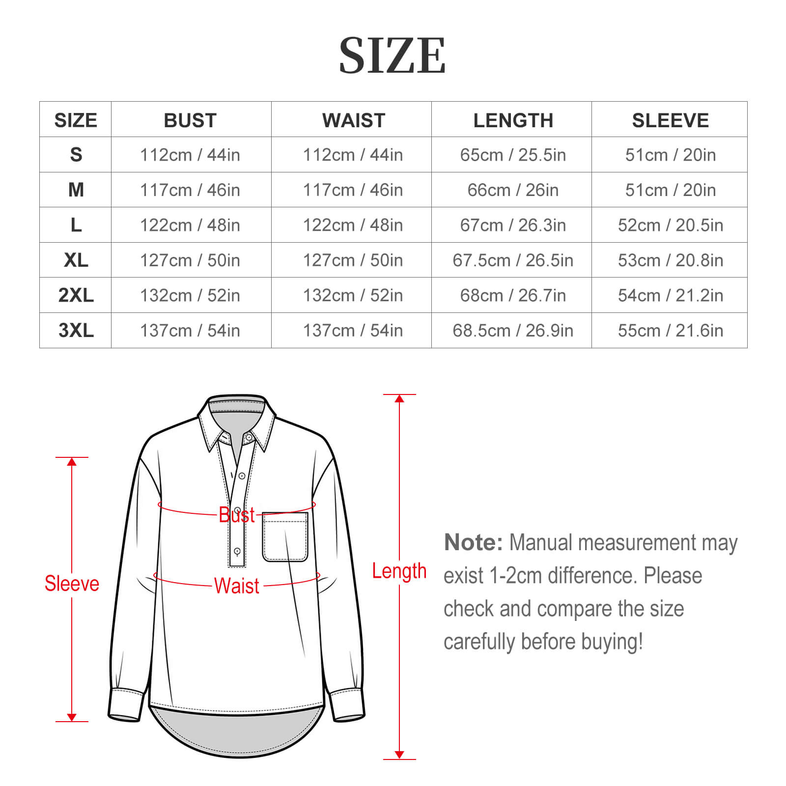 | 2XL | 132cm / 52in | 132cm / 52in | 68cm / 26.7in | 54cm / 21.2in |