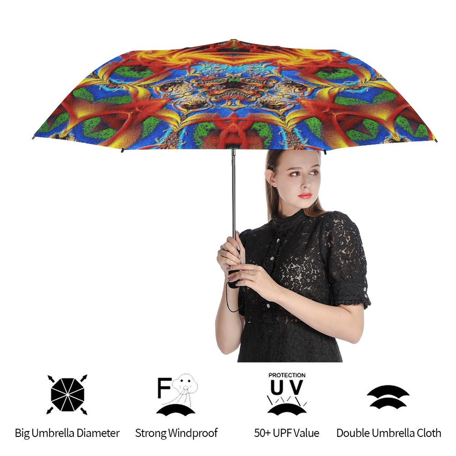 Une grande surface de protection est aussi une grande surface de création. La toile extérieure est entièrement personnalisable. Imprimez une photo panoramique, un logo d'entreprise ou une œuvre d'art pour créer un objet spectaculaire. À l'intérieur, la doublure en vinyle noir vous protège des UV, faisant de ce parapluie un compagnon indispensable, qu'il pleuve ou que le soleil brille. Livré avec sa housse personnalisée, il est le cadeau parfait, alliant prestige et utilité.