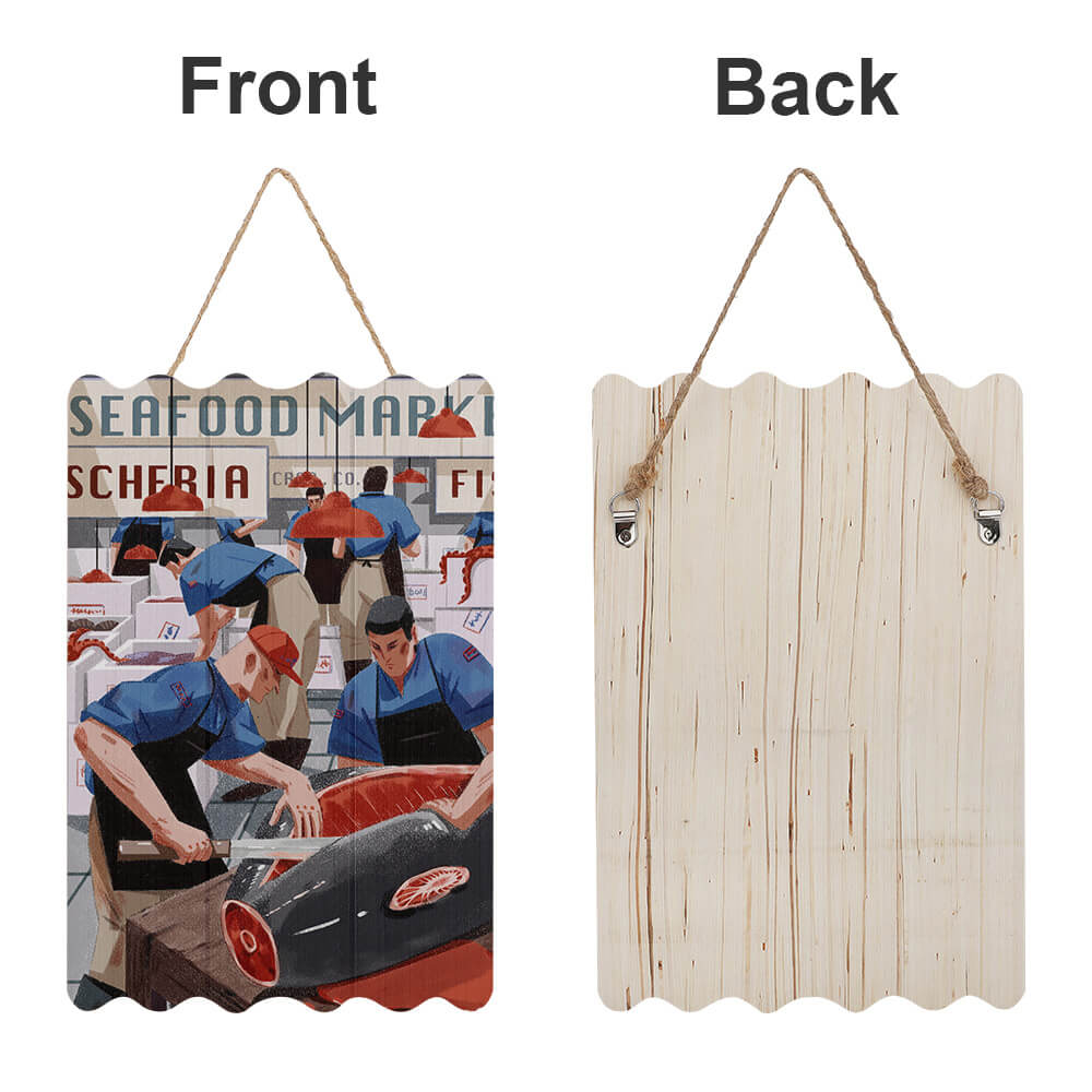 Panneau suspendue en bois / peinture suspendu de plaque de bois (Vague 20×30cm) GY0903174 Personnalisé avec image / photo / logo / motif, cette peinture sur panneau de bois est composée d'un panneau en bois rectangulaire et d'un cordon en coton et lin. La peinture sur panneau de bois est faite de sapin de Chine de haute qualité, parfaitement colorée et clairement imprimée. Ce sont des peintures idéales pour les cafés, les jardins, les fêtes, les maisons, les bureaux, etc. Le design simple et élégant permet à votre imagination de courir librement. Le design ondulé est plus à la mode, indiscipliné et distinctif.