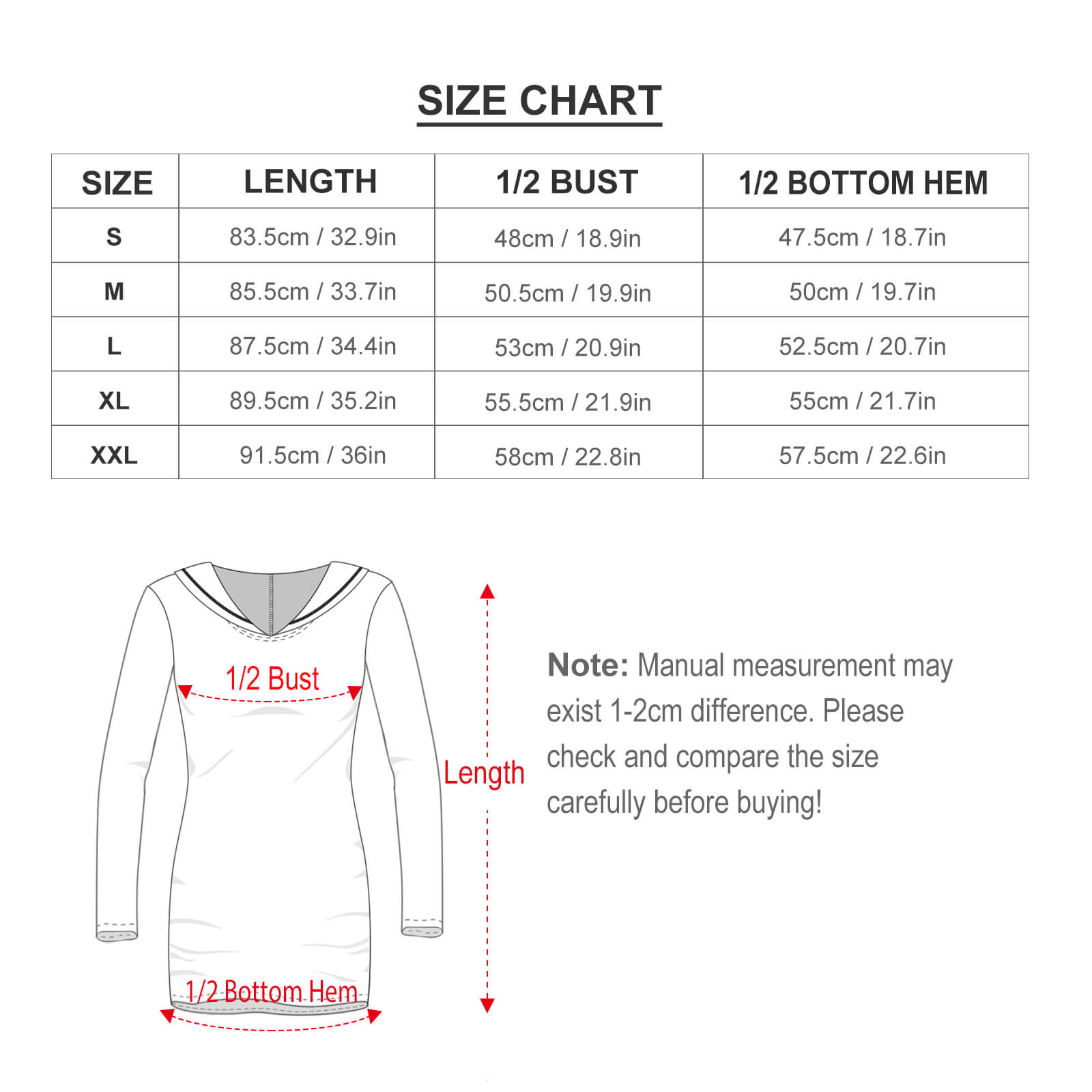 | XL | 89.5 | 55.5 | 55 |